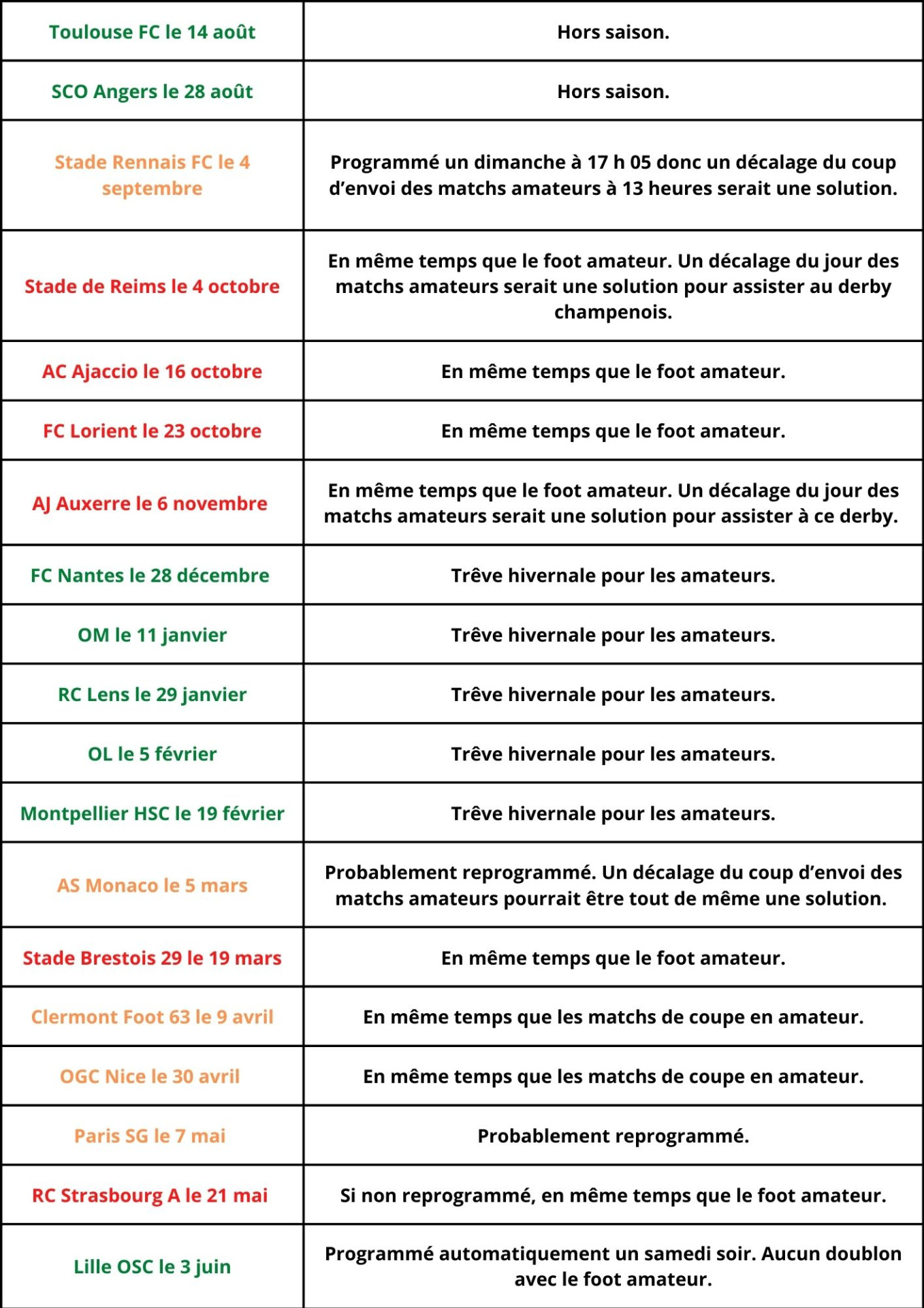 du coup d'envoi voire même changer de jour) pour programmer les matchs amateurs
